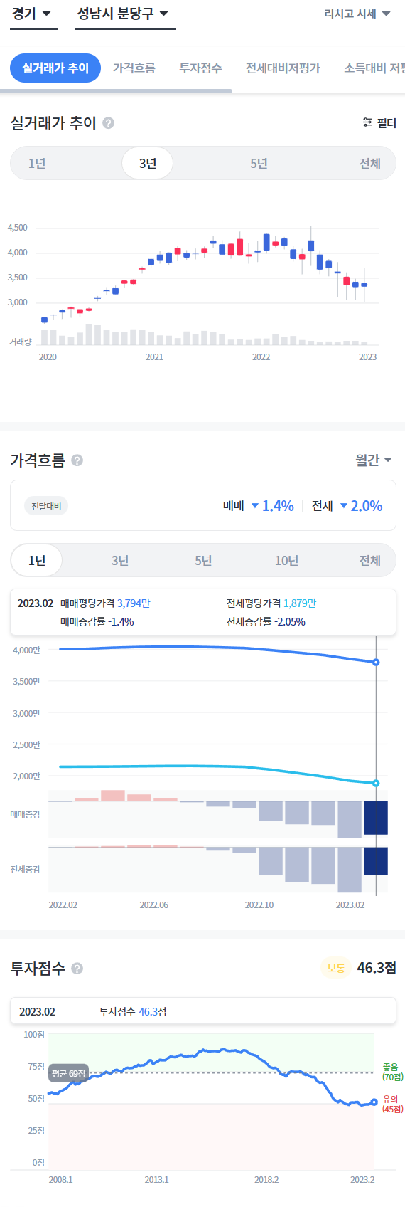 즉 매매가는 하락했고 전세가는 변동이 없었다.