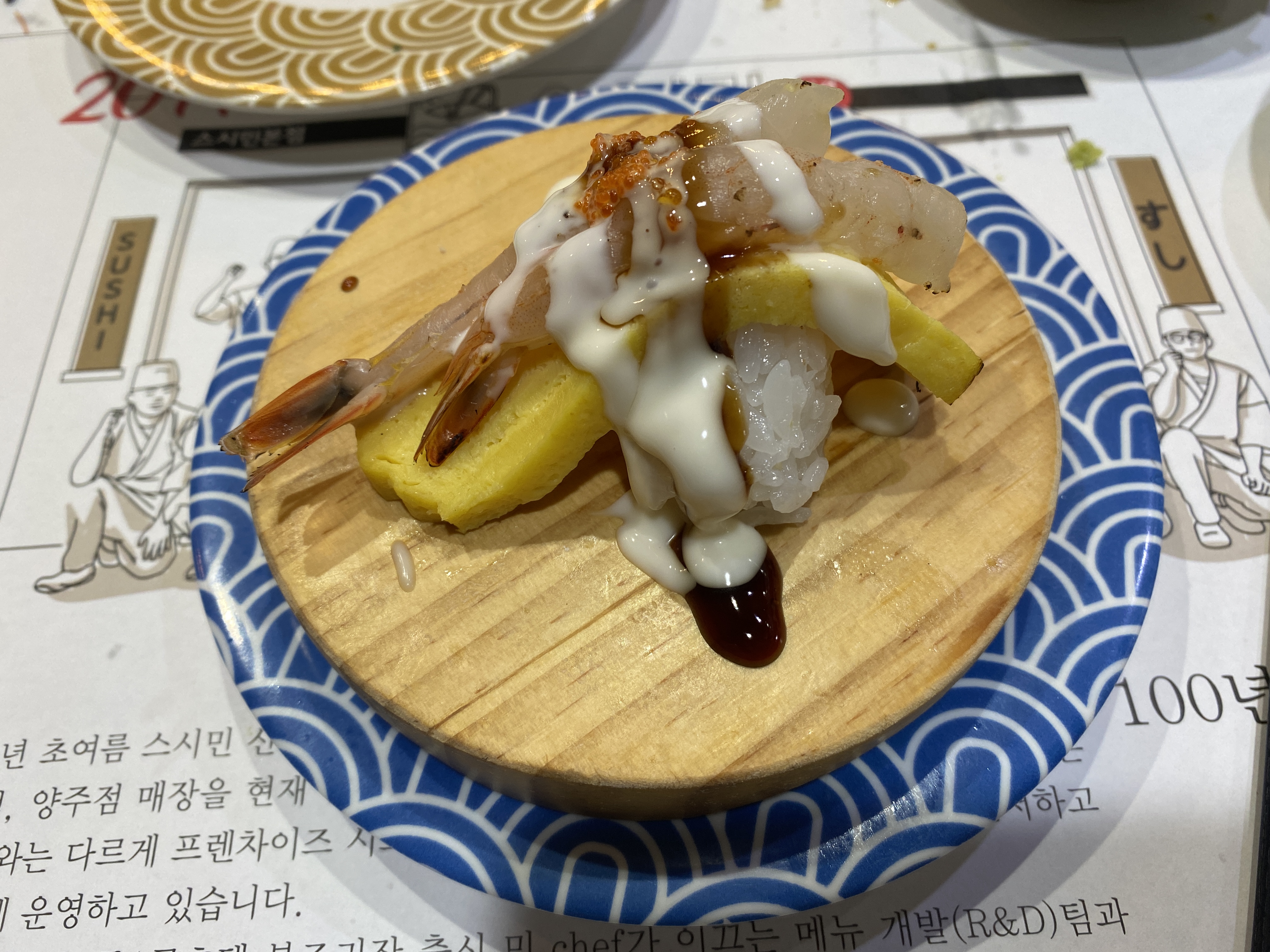이 밖에도 새우, 간장, 새우, 계란, 가자미, 연어 등 다양한 종류의 스시가 있다. 원하는 스시가 없을 경우 태블릿을 이용해 눈앞에서 주문할 수 있다.