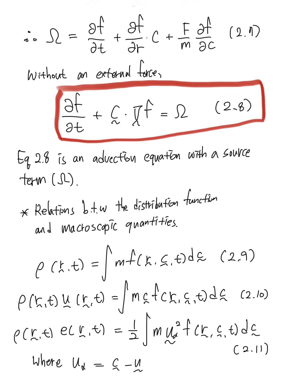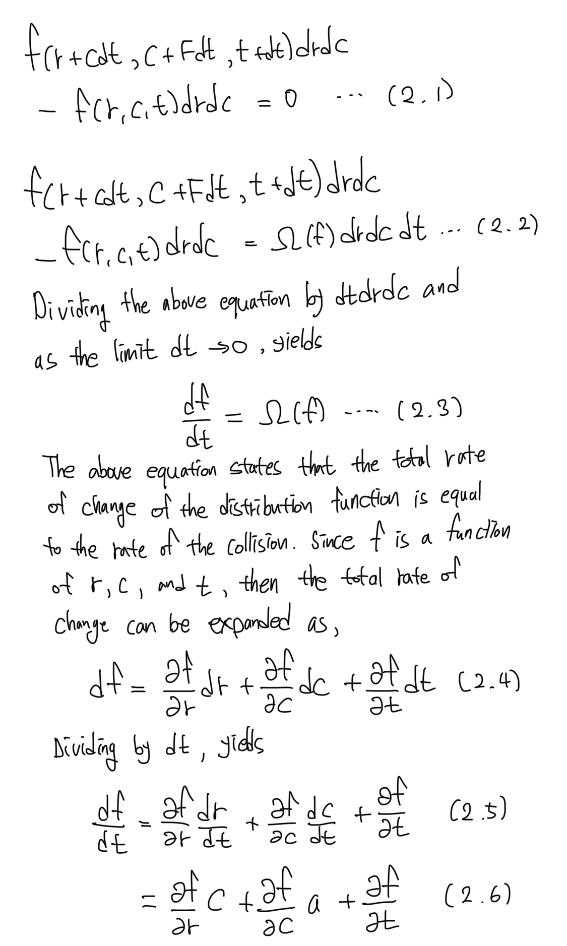 (2) 단위 질량을 가진 기체 입자에 외력 F가 작용하면 속도는 c에서 c+Fdt로, 위치는 r에서 r+cdt로 변해야 합니다.